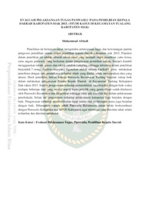 This study aims to determine the implementation of duties and authority of the election supervisory committee in the election of district head of siak district 2015. The population in this study are all elements that become the object of research that is the chairman, as well as members of Panwaslu members concerned in the supervision of the general election. The sample was taken using census technique and random sampling technique so that the informants in the study amounted to 7 people. Data analysis used is qualitative method that is doing research by way of approach to object under study to get accurate data. The result of the research shows that the performance of Panwaslu of Tualang District is good enough in conducting supervision of General Election of Regional Head in Tualang Subdistrict of Siak Regency in 2015. As monitoring of data updating goes well even though there are some invalid data such as double voting card but have been investigated by Kecamatan Panwaslu and reported that there is no problem in the implementation of the election. In addition, monitoring of the campaign implementation is also running well. Supervision of timely distribution and voice counting works well. It is expected that the District Panwaslu to always coordinate with the District Panwaslu and District KPUDs so that the information received is not always late and received suddenly.