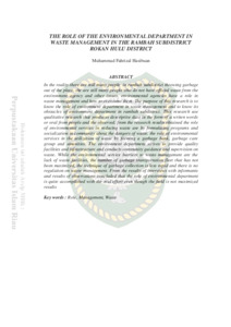 In the reality there are still many people in rambah subdistrict throwing garbage out of the place. the are still many people who do not have official waste from the environment agency and other issues, environmental agencies have a role in waste management and how to overcome them. The purpose of this research is to know the role of environment department in waste management and to know its obstacles of environment department in rambah subdistrict. This research use qualitative research that produces descriptive data in the form of a writen words or oral from people and the observed. from the research results obtained the role of environmental services in reducing waste are by formulating programs and socialization in community about the dangers of waste. the role of environmental services in the utilization of waste by forming a garbage bank, garbage care group and amenities. The environment department strives to provide quality facilities and infrastructure and conducts community guidance and supervision on waste. While the environmental service barriers to waste management are the lack of waste facilities, the number of garbage transportation fleet that has not been maximized, the technique of garbage collection is less rapid and there is no regulation on waste management. From the results of interviews with informants and results of observations concluded that the role of environmental department is quite accomplished with the real effort even though the field is not maximized results.