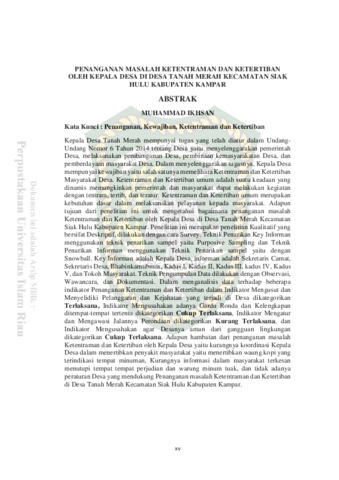 Ikhsan, Muhammad (2018) Penanganan Masalah Ketentraman Dan Ketertiban Oleh Kepala Desa Di Desa Tanah Merah Kecamatan Siak Hulu Kabupaten Kampar. Other thesis, Universitas Islam Riau.