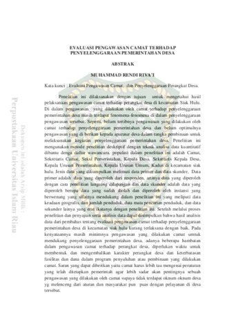Riva'i, Muhammad Rendi (2018) Evaluasi Pengawasan Camat Terhadap Penyelenggaraan Pemerintahan Desa. Other thesis, Universitas Islam Riau.
