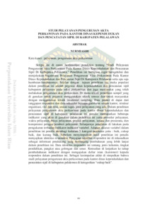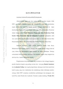 This thesis is arranged based on research on "study service of dealing of marriage deed at office of residence and civil registration in regency of pelalawan". This study aims to find out and explain how the service of marriage deed in the office of population and civil registration in the district of Pelalawan and what are the obstacles. In line with the objectives of the study, the population in this study were civil service officers and civil registration of pelalawan districts in the marriage section and also the people who have done the deed of marriage deed. Where sampling techniques are used for employees using census techniques and for the community using incidental sampling techniques. Primary data in the can of respondents and secondary data with a general overview of the office, organizational structure, vision and mission, job descriptions, types of services available. In the research service of marriage certificate in the office of population and civil registration in this pelalawan district, the writer describes some indicators that will be used in this research that is service procedure, service time, service cost, service product, facilities and infrastructure, and competence of service provider . Further research is done on the measurement of the variable indicators. The size of variables in this study the authors divide into 3 categories of assessment are: good, good enough, and less good. Before concluding the results of this study the authors present the identity of respondents. Presentation of the identity of this respondent in mkasudkan as supporting information that support further discussion in this research. The identity data of this respondent about gender, education level, rank or class and age. Then proceed to stage discussion of the indicator by submitting a checklist (questionnaire) to the respondents in this study. As a final conclusion, it was concluded that the study of the service of marriage certificate at the office of civil service and civil registration in the pelalawan district is categorized as "good enough".