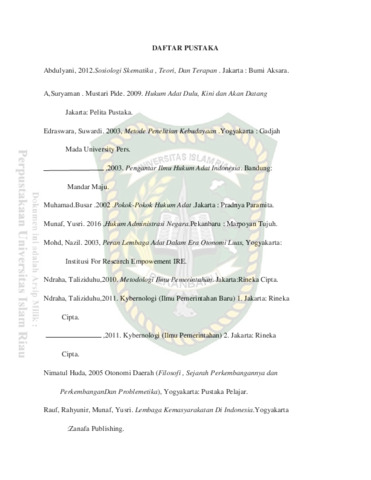 Andiny, Putri (2018) Evaluasi Pelaksanaan Fungsi Lembaga Adat Dalam Membantu Tugas Pemerintah Desa Di Desa Pintu Gobang Kari Kecamatan Kuantan Tengah Kabupaten Kuantan Singingi. Other thesis, Universitas Islam Riau.