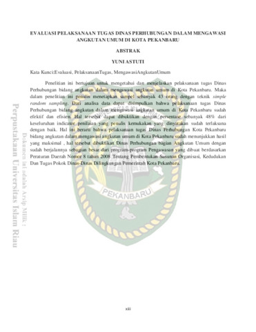 Astuti, Yuni (2018) Evaluasi Pelaksanaan Tugas Dinas Perhubungan Dalam Mengawasi Angkutan Umum Di Kota Pekanbaru. Other thesis, Universitas Islam Riau.