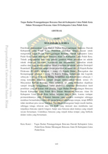 | Uncontrolled Keywords: | ds: Task of the Lima Puluh Kota District Disaster Management Agency in Handling Natural Disasters in Lima Puluh Kota District |