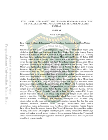 Purwanti, Wiwik (2018) Evaluasi Pelaksanaan Tugas Lembaga Kemsyarakatan Desa Mekar Jaya Kecamatan Kampar Kiri Tengah Kabupaten Kampar. Other thesis, Universitas Islam Riau.