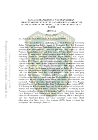 Lestari, Winda (2018) Evaluasi Pelaksanaan Wewenang Badan Permusyawaratan Rakyat Nagari Di Kenagarian Tepi Selo Kecamatan Lintau Buo Utara Kabupaten Tanah Datar. Other thesis, Universitas Islam Riau.