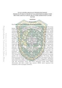 Penelitian ini bertujuan untuk mengetahui hasil Pelaksanaan Wewenang Badan Permusyawaratan Rakyat Nagari di Kenagarian Tepi Selo Kecamatan Lintau Buo Utara Kabupaten Tanah Datar dan untuk mengetahui hambatan yang mempengaruhi pelaksanaannya. Indikator penilaian yang digunakan adalah Peraturan Daerah Kabupaten Tanah Datar nomor 04 Tahun 2008 Tentang Nagari pada pasal 35 menyebutkan badan Permusyawaratan Rakyat Nagari mempunyai wewenang membahas rancangan Peraturan Nagari bersama Wali Nagari, Mengusulkan rancangan dan pemberentian Wali Nagari, membentuk panitia pemilihan Wali Nagari, menggali,menampung,merumuskan dan menyalurkan aspirasi masyarakat, melaksanakan pengawasan terhadap pelaksanaan Peraturan Nagari dan Peraturan Wali Nagari, melaksanakan APB Nagari, kebijakan Pemerintah Nagari, pelaksanaan kerjasama yang dilakukan oleh Pemerintah Nagari,dan pengelolaan aset Nagari. Tipe penelitian yang berlokasi di Kenagarian Tepi Selo Kecamatan Lintau Buo Utara Kabupaten Tanah Datar. Data yang diperoleh dari kuisioner, wawancara, dokumentasi, dan studi kepustakaan, kemudian semua data terkumpul maka data dikelompokkan menurut jenis dan sumber data, hasilnya disajikan dalam bentuk tabel analisa secara kualitatif dan kuantitatif. Adapun responden dalam penelitian ini meliputi Wali Nagari, Sekretaris Nagari, Kaur Pemerintahan, Kaur Pembangunan, Kaur Umum, BPRN, Wali Jororng dan KK masyarakat Tepi Selo. Teknik analisis penelitian ini peneliti menilai dan menyimpulkan bahwa Evaluasi Pelaksanaan Wewenang Badan Permusyawaratan Rakyat Nagari di Kenagarian Tepi Selo Kecamatan Lintau Buo Utara Kabupaten Tanah Datar berada dalam kategori Cukup Baik. Sedangkan faktor-faktor menyebabkan tidak terlaksananya wewenang BPRN di Kenagarian Tepi Selo Kecamatan Lintau Buo Utara Kabupaten Tanah Datar adalah dikarenakan oleh faktor sumber daya manusia (SDM), faktor organisasi dan manajemen, faktor keuangan (financial).