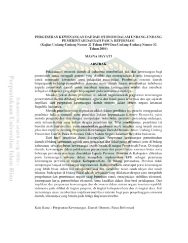 Hayati, Masna (2018) Pergeseran Kewenangan Daerah Otonom Dalam Undang-Undang Pemerintah Daerah Pasca Reformasi (Kajian Undang-Undang Nomor 22 Tahun 1999 dan Undang-Undang Nomor 32 Tahun 2004). Other thesis, Universitas Islam Riau.