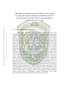 Disipline is a thing that becomes a benchmark to know whether the overallleadership role can be carried out property or not, according to article 1 paragraf 1 of the Republic Of Indonesia govermen number 53 of 2010 concerning the discipline of civil servants to obey obligations and avoid bans determined in legislation and/ or official regulations which if not adhered to or violated, comply with disciplinary penalties, Bandar Sei Kijang sub district is one of sub district located in Pelalawan Regency which was established in 2005 and has 1 Village and 4 Villages namely Kelurahan Sekijang, Kiab Jaya Village, Lubuk Ogung Village, Muda Setia Village, and Simpang Beringin Village. The purpose of this study is to know, analyze ang obstacles Implementation Of Regulatorial Regulation Number 65 Year 2015 Concerning Enforcement Ofdiscipline Of Employees Clearing Office Camat Bandar Sei Kijang District Of Pelalawan. The sample in this study is 27 people, in this study the authors use the sensure in which the entire population sampled considering the number of relative little. Teknik data collection used with questionnaires, interviews, and observations. From the results of research that the authors do can be concluded that Implementation Of Regulatorial Regulation Number 65 Year 2015 Concerning Enforcement Ofdiscipline Of Employees Clearing Office Camat Bandar Sei Kijang District Of Pelalawan is categorized as led implementasi assessment, this is because the apple implementation is only a small percentage of employees implementing apple, not all employees implement it, in enforcing disciplinary sanction on employee who does not discipline Bandar Sei Kijang Didtrik Chief also does not apply according to the Regent’s Regulation with various considerations, especially social considerations, the sub district only instruct the Secretary of the subDistrict to give only the duties.
