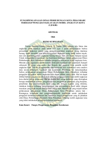 Kurniawan, Rizki (2018) Fungsi Pengawasan Dinas Perhubungan Kota Pekanbaru Terhadap Pengujian Kelayakan Mobil Angkutan Kota (Uji KIR). Other thesis, Universitas Islam Riau.