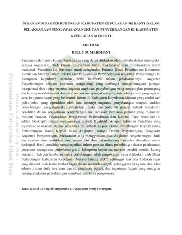 Sumardhani, Rully (2018) Peranan Dinas Perhubungan Kabupaten Kepulauan Meranti Dalam Pelaksanaan Pengawasan Angkutan Penyebrangan Di Kabupaten Kepulauan Meranti. Other thesis, Universitas Islam Riau.