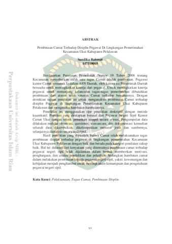 Rahmat, Sandika (2018) Pembinaan Camat Terhadap Disiplin Pegawai Di Lingkungan Pemerintahan Kecamatan Ukui Kabupaten Pelalawan. Other thesis, Universitas Islam Riau.