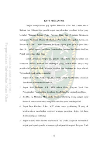 Kapri, Satrian (2018) Peranan Satuan Polisi Pamong Praja dan Pemadam Kebakaran Kabupaten Pelalawan Dalam Memberikan Penyuluhan Pencegahan Kebakaran Hutan dan Lahan. Other thesis, Universitas Islam Riau.