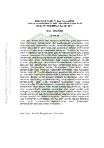 Sumardi, Sumardi (2018) Analisis Pengelolaan Dana Desa di Desa Hangtuah Kecamatan Perhentian Raja Kabupaten Kampar Tahun 2017. Other thesis, Universitas Islam Riau.
