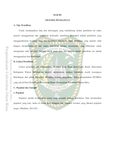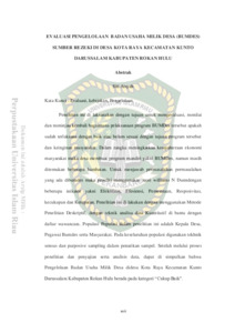 Aisyah, Siti (2018) Evaluasi Pengelolaan Badan Usaha Milik Desa (BUMDES) Sumber Rezeki di Desa Kota Raya Kecamatan Kunto Darussalam Kabupaten Rokan Hulu. Other thesis, Universitas Islam Riau.