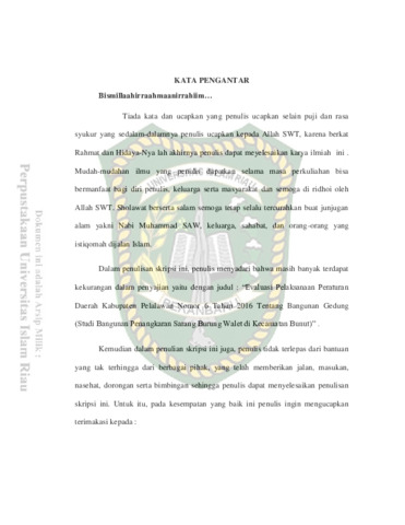 Syafriansyah, Syafriansyah (2018) Evaluasi Pelaksanaan Peraturan Daerah Kabupaten Pelalawan No.6 Tahun 2016 Bangunan Gedung (Studi Izin Mendirikan Bangunan Penangkaran Sarang Burung Walet Di Kecamatan Bunut). Other thesis, Universitas Islam Riau.