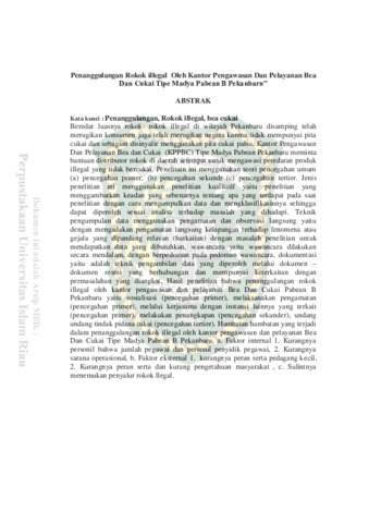 Apriani, Ari (2018) Penanggulangan Rokok illegal Oleh Kantor Pengawasan dan Pelayanan Bea dan Cukai Tipe Madya Pabean B Pekanbaru. Other thesis, Universitas Islam Riau.