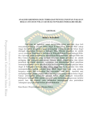 Widarso, Rizky (2018) Analisis Kriminologis Terhadap Penyelundupan Pakaian Bekas (Studi di Wilayah Hukum Polres Indragiri Hilir). Other thesis, Universitas Islam Riau.