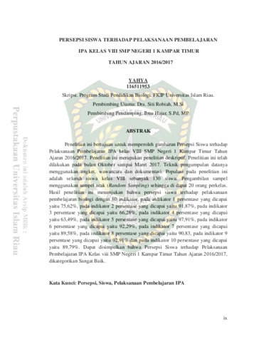 Yahya, Yahya (2018) Persepsi Siswa Terhadap Pelaksanaan Pembelajaran IPA Kelas VIII SMP Negeri 1 Kampar Timur Tahun Ajaran 2016/2017. Other thesis, Universitas Islam Riau.