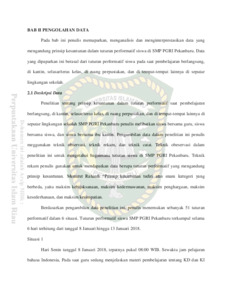 Prinsip kesantunan seorang penutur harus peka dengan situasi pada saat peristiwa tutur terjadi, kapan seorang penutur harus mengalah, dan kapan seorang menguasai tuturan. Adapun masalah penelitian ini yaitu bagaimanakah tuturan performatif siswa di SMP PGRI Pekanbaru dan bagaimanakah maksim prinsip kesantunan yang terdapat dalam tuturan performatif siswa di SMP PGRI Pekanbaru. Penelitian ini bertujuan untuk mengetahui tuturan performatif siswa SMP PGRI Pekanbaru dan mendeskripsikan, menganalisis, dan menginterprestasikan prinsip kesantunan yang terdapat dalam tuturan performatif siswa SMP PGRI Pekanbaru. Penelitian ini menggunakan teori analisis wacana pragmatik kajian teori dan analisis oleh Wijana dan Rohmadi (2009) dan didukung oleh teori-teori lainnya seperti; Kesantunan Imperatif Bahasa Indonesia oleh Kunjana Rahardi (2005), Pragmatik oleh George Yule (2006), Pragmatik dan Penelitian Pragmatik oleh F. X. Nadar (2009), Geoffrey Leech (1993), dan pengajaran Pragmatik dari Tarigan (1986). Penelitian ini menggunakan metode deskriptif, yaitu menggambarkan keadaan yang sebenarnya dengan menganalisis dan menginterpretasikan data agar menemukan maksim-maksim prinsip kesantunan dalam tuturan siswa SMP PGRI Pekanbaru. Teknik yang digunakan adalah teknik observasi, teknik dokumentasi, dan teknik catat. Kesimpulan dari penelitian yaitu prinsip kesantunan dalam tuturan performatif siswa SMP PGRI Pekanbaru terdapat 51 tuturan performatif, yang memenuhi syarat niat terdapat 0 tuturan, syarat pelaksanaan terdapat 30 tuturan, syarat kemampuan terdapat 16 tuturan, syarat tindakan yang akan dilakukan 11 tuturan, dan syarat tindakan yang dilakukan orang lain terdapat 0 tuturan. Pada maksim kebijaksanaan terdapat 8 tuturan, permufakatan sebanyak 45 tuturan dan maksim kesimpatian terdapat 1 tuturan. Tuturan performatif yang di dapat peneliti selama 6 hari dan 6 situasi sebanyak 51 tuturan.