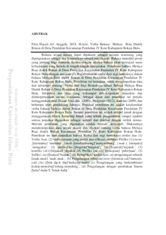 Anggela, Fitra Hayati Ari (2018) Verba Bahasa Melayu Riau Dialek Rokan di Desa Pendalian Kecamatan Pendalian IV Koto Kabupaten Rokan Hulu. Other thesis, Universitas Islam Riau.