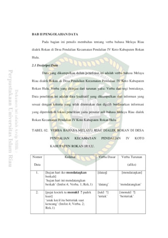 Verba Bahasa Melayu Riau Dialek Rokan di Desa Pendalian Kecamatan Pendalian IV Koto Kabupaten Rokan Hulu