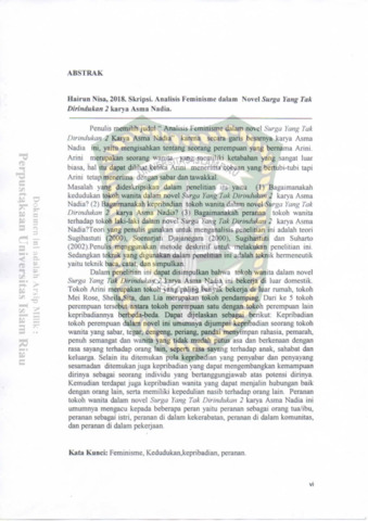 Nisa, Hairun (2018) Analisis Ferninisme dalam Novel Surga yang Tak Dirindukan 2 Karya Asma Nadia. Other thesis, Universitas Islam Riau.