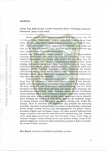Penulis memilih judul "Analisis Ferninisme dalam novel Surga Yang Tak Dirindukan 2 Karya Asma Nadia" karena secara garis besarnya karya Asma Nadia ini, yaitu mengisahkan tentang seorang perempuan yang bemama Arini. Arini merupakan seorang wanita yang memiliki ketabahan yang sangat luar biasa, hal itu dapat dilihat ketika Arini menerima cobaan yang bertubi-tubi tapi Arini tetap menerima dengan sabar dan tawakkal. Masalah yang dideskripsikan dalam penelitian ini yaitu (1) Bagaimanakah kedudukan tokoh wanita dalam novel Surga Yang Tak Dirtndukan 2 karya Asma Nadia? (2) Bagaimanakah kepribadian tokoh wanita dalam novel Surga Yang Tak Dirindukan 2 karya Asma Nadia?(3) Bagaimanakah peranan tokoh wanita terhadap tokoh laki-laki dalam novel Surga Yang Tak Dirindukan 2 karya Asma Nadia?Teori yang penulis gunakan untuk menganalisis penelitian iai adalah teori Sugihasturi (2000), Soenarjati Djajanegara (2000), Sugihastuti dan Suharto (2002).Penulis menggunakan metode deskritif uatuk melakukan penelitian ini. Sedangkan teknik yang digunakan dalam penelitian ini adalah teknik hermeneutik yaitu teknik baca, catat, dan simpulkan. Dalam penelitian ini dapat disimpulkan bahwa tokoh wanita dalam novel Surga Yang Tak Dirindukan 2 karya Asma Nadia ini bekerja di luar domestik. Tokoh Arini merupakan tokoh yang paling banyak bekerja di luar rumah, tokoh Mei Rose, Sheila. Sita, dan Lia merupakan tokoh pendamping, Dari ke 5 tokoh perempuan tersebut antara tokoh perempuan satu dengan tokoh perempuan lain kepribadiannya berbeda-beda. Dapat dijelaskan sebagai berikut: Kepribadian tokoh perempuan dalam novel ini umumnya dijumpai kepribadian seorang tokoh wanita yang sabar, tegar, cengeng, periang, pandai menyimpan rahasia, pemarah, penuh semangat dan wanita yang tidak mudah putus asa dan berkenaan dengan rasa sayang terbadap orang lain, seperti rasa sayang terhadap anak, sahabat dan keluarga, Selain itu ditemukan pula kepribadian yang penyabar dan penyayang sesama dan ditemukan juga kepribadian yang dapat mengembangkan kemampuan dirinya sebagai seorang individu yang bertanggungjawab atas potensi dirinya. Kemudian terdapat juga kepribadian wanita yang dapat menjalin hubungan baik dengan orang lain, serta memiliki kepedulian nasib terhadap orang lain. Peranan tokoh wanita dalam novel Surga Yang Tak Dirindukan 2 karya Asma Nadia ini umumnya mengacu kepada beberapa peran yaitu peranan sebagai orang tua/ibu, peranan sebagai istri, peranan di dalam kekerabatan, peranan di dalam komunitas dan peranan di dalam pekerjaan.