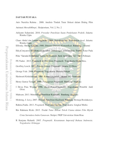 Siregar, Intan Dumela (2018) Tindak Tutur Ilokusi Tokoh Utama dalam Film 5 CM Karya Rizal Mantovani. Other thesis, Universitas Islam Riau.