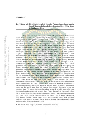 Khairiyah, Isra' (2018) Analisis Konteks Wacana dalam Cerpen pada Buku Pelajaran Bahasa Indonesia untuk Siswa SMA Kelas XI Kurikulum 2013. Other thesis, Universitas Islam Riau.
