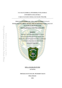 Putri, Dina Anggraini (2021) Peranan Pemerintah Desa Dalam Perencanaan Pembangunan Desa Di Desa Perawang Barat Kecamatan Tualang Kabupaten Siak (Studi Pembangunan Fisik Pada Tahun 2019). Other thesis, Universitas Islam Riau.