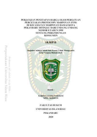 Hakim, Karina Lukman (2020) Perjanjian Penetapan Harga Oleh Persatuan Percetakan Photocopy Marpoyan (P2M) Di Kecamatan Marpoyan Damai Kota Pekanbaru Ditinjau Dari Undang-undang Nomor 8 Tahun 1999 Tentang Perlindungan Konsumen. Other thesis, Universitas Islam Riau.