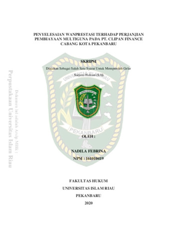 Febrina, Nadila (2020) Penyelesaian Wanprestasi Terhadap Perjanjian Pembiayaan Multiguna Pada PT. Clipan Finance Cabang Kota Pekanbaru. Other thesis, Universitas Islam Riau.