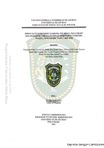 Peran Satuan Reserse Narkoba Polresta Pekanbaru Dalam Mengantisipasi Peredaran Narkoba Di Kota Pekanbaru Tahun 2019-2020