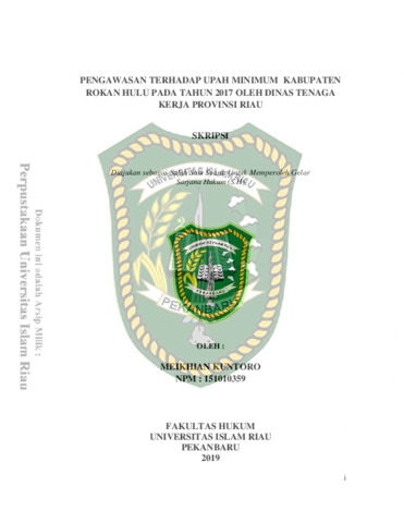 Kuntoro, Meikhian (2019) Pengawasan Terhadap Upah Minimum Kabupaten Rokan Hulu Pada Tahun 2017 Oleh Dinas Tenaga Kerja Provinsi Riau. Other thesis, Universitas Islam Riau.