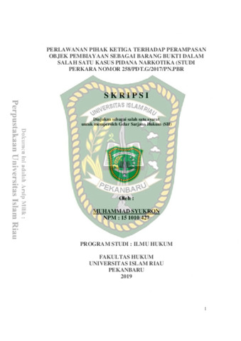 Syukron, Muhammad (2019) Perlawanan Pihak Ketiga Terhadap Perampasan Objek Pembiayaan Sebagai Barang Bukti Dalam Salah Satu Kasus Pidana Narkotika (Studi Perkara Nomor 258/PDT.G/2017/PN.PBR. Other thesis, Universitas Islam Riau.