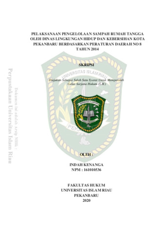 Pelaksanaan Pengelolaan Sampah Rumah Tangga Oleh Dinas Lingkungan Hidup dan Kebersihan Kota Pekanbaru Berdasarkan Peraturan Daerah No 8 Tahun 2014