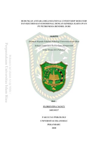 Relationship Between Organazitonal Citizenship Behavior And Emotional Intelligence With Employee Performance PT Petronesia Benimel Duri Florentina Nancy 168110217 FACULTY OF PSYCHOLOGY RIAU ISLAMIC UNIVERSITY ABSTRACT Employees are one of the important assets in the organization because production and achievement in the organization comes from the availability of quality human resources. Quality employees need good Organazitonal Citizenship Behavior and Emotional Intelligence so that they will produce good performance by having quality competitive. OCB is a positive individual behavior helping others voluntarily, and emotional intelligence is a person's way of recognizing emotions in order to solve problems. Performance is the work given by employees as seen from the quality, quality and quantity. The purpose of this study was to determine whether there is a relationship between OCB, emotional intelligence and the performance of PT Petronesia Benimel Duri employees. The population in this study were employees who were working at PT Petronesia Benimel Duri, with a total sample of 217 subjects who were taken using purposive sampling technique. Data collection used three scales, namely the OCB scale, emotional intelligence scale and performance scale. Power was analyzed using the product moment correlation analysis technique. The relationship shows that there is a significant positive relationship between OCB and emotional intelligence with employee performance (r = 0.262, p = 0.000). The higher the employee's OCB and emotional intelligence, the higher the performance.