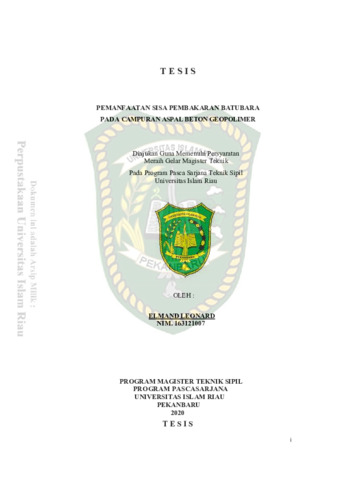 Leonard, Elmand (2020) Pemanfaatan Sisa Pembakaran Batubara Pada Campuran Aspal Beton Geopolimer. Other thesis, Universitas Islam Riau.