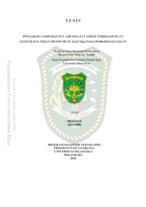 Thaufan, Thaufan (2020) Pengaruh Campuran Fly Ash dan Zat Aditif Terhadap Kuat Lentur dan Tekan Beton Mutu Fs4,5 MPA Pada Perkerasan Jalan. Masters thesis, Universitas Islam Riau.