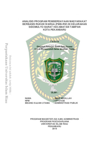 Abdillah, Andy (2019) Analisis Program Pemberdayaan Masyarakat Berbasis Rukun Warga (PMB-RW) Di Kelurahan Sidomulyo Barat Kecamatan Tampan Kota Pekanbaru. Masters thesis, Universitas Islam Riau.
