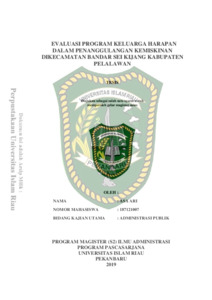 Ari, Asa (2019) Evaluasi Program Keluarga Harapan Dalam Penanggulangan Kemiskinan Dikecamatan Bandar Sei Kijang Kabupaten Pelalawan. Masters thesis, Universitas Islam Riau.