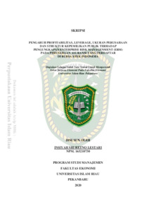 Lestari, Insiyah Sri Retno (2021) Pengaruh Profitabilitas, Leverage, Ukuran Perusahaan Dan Struktur Kepemilikan Publik Terhadap Pengungkapan Enterprise Risk Mngement (ERM) Apa Perusahan Asuransi Yng Terdaftar Di Bursa Efek Indonesia. Other thesis, Universitas Islam Riau.