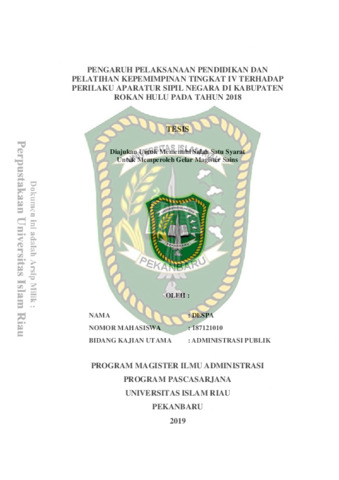 Despa, Despa (2019) Pengaruh Pelaksanaan Pendidikan Dan Pelatihan Kepemimpinan Tingkat IV Terhadap Perilaku Aparatur Sipil Negara Di Kabupaten Rokan Hulu Pada Tahun 2018. Other thesis, Universitas Islam Riau.
