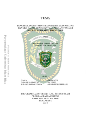Doni, Dona (2019) Pengelolaan Retribusi Pasar Pelita Kecamatan Bangko Dalam Meningkatkan Pendapatan Asli Daerah Kabupaten Rokan Hilir. Masters thesis, Universitas Islam Riau.