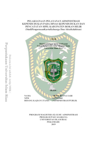 Sari, Dona Ratna (2019) Pelaksanaan Pelayanan Administrasi Kependudukan Pada Dinas Kependudukan Dan Pencatatan Sipil Kabupaten Rokan Hilir (Studi Pengurusan Kartu Keluarga Dan Akta Kelahiran). Masters thesis, Universitas Islam Riau.