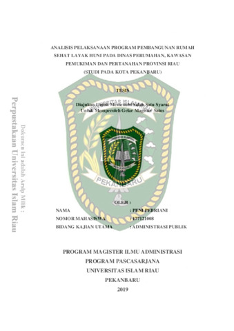 Pebriani, Peni (2019) Analisis Pelaksanaan Program Pembangunan Rumah Sehat Layak Huni Pada Dinas Perumahan, Kawasan Pemukiman Dan Pertanahan Provinsi Riau (Studi Pada Kota Pekanbaru). Other thesis, Universitas Islam Riau.