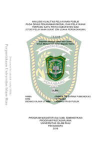 Pamungkas, Phinta Tri Sarina (2019) Analisis Kualitas Pelayanan Publik Pada Dinas Penanaman Modal Dan Pelayanan Terpadu Satu Pintu Kabupaten Siak (Studi Pelayanan Surat Izin Usaha Perdagangan). Masters thesis, Universitas Islam Riau.