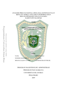 Ali, Rosihan (2019) Analisis Peranan Kepala Desa Dalam Penggunaan Rencana Kerja Anggaran Pemerintahan Desa Kampar Kecamatan Kampa Kabupaten Kampar. Masters thesis, Universitas Islam Riau.