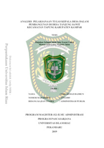 Badrun, Said Ahmad (2019) Analisis Pelaksanaan Tugas Kepala Desa Dalam Pembangunan Di Desa Tanjung Sawit Kecamatan Tapung Kabupaten Kampar. Masters thesis, Universitas Islam Riau.